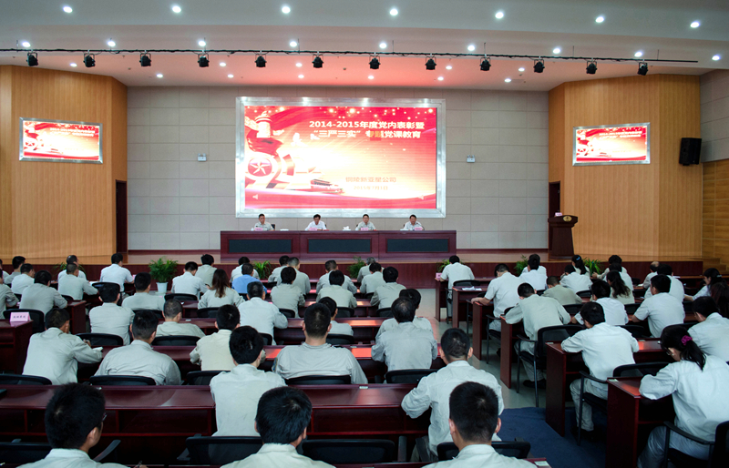7月1日上午,新亚星2014-2015年度党内先进表彰暨“三严三实”专题党课教育在综合楼多功能厅举行。中特集团党委副书记何旭林出席了大会,公司党政班子成员、党员代表、受到表彰的先进基层党组织、优秀共产党员、优秀党务工作者以及今年新发展入党的新党员共110人参加了会议。会议由公司党委委员、纪委书记、总审计师陈国安主持。